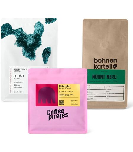 Espresso Probierpaket "3-Länder Kaffeeset" - 3 x 250 g Ganze Bohne Aufbewahrungshinweise: Trocken, dunkel und vor Wärme geschützt lagern. Probierpaket bestehend aus drei verschiedenen Espresso-RöstungenSet beinhaltet 1x Sertao Espresso von Hoppenworth & Ploch, 1x El Salvador Tato´s Choice Espresso von Coffee Pirates, 1x Mount Meru von bohnenkartellIdeal für die Zubereitung als Espresso3x 250 g Ganze BohneSet-Ersparnis im Vergleich zum Kauf der Einzelartikel ...