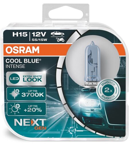 Osram Cool Blue® Intense H15 Duobox Glühlampe, Fernscheinwerfer,Glühlampe, Hauptscheinwerfer,Glühlampe, Park-/positionsleuchte,Glühlampe, Tagfahrleuch