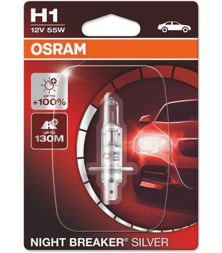 OSRAM NIGHT BREAKER® SILVER H1 Einzelblister Nennleistung [W]:55 W Spannung [V]:12 V Sockelausführung Glühlampe P14.5s Lampenart H1 ...