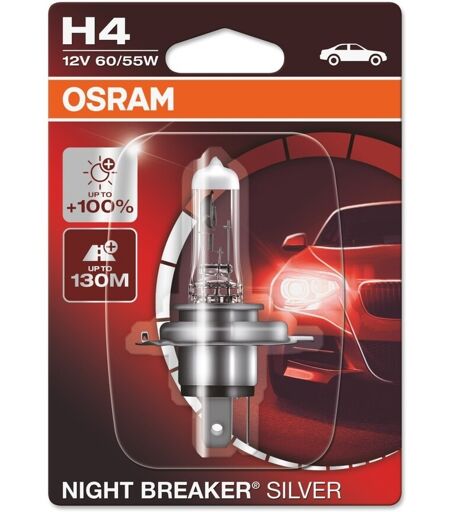 Osram Night Breaker® Silver H4 Einzelblister Glühlampe, Fernscheinwerfer,Glühlampe, Nebelscheinwerfer,Glühlampe, Hauptscheinwerfer 12v 64193nbs-1bl