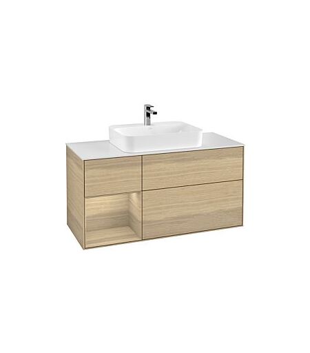 Villeroy und Boch Finion Waschtischunterschrank F411PCPC 120cm, Abdeckplatte white matt, Regal links Oak Veneer, Oak Veneer