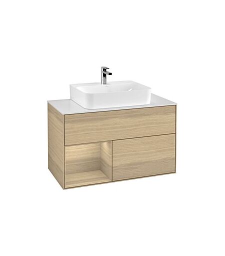 Villeroy und Boch Finion Waschtischunterschrank G111PCPC 100cm, Abdeckplatte white matt, Emotion, Regal links Oak Veneer, Oak Veneer