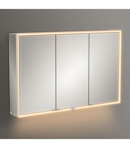 My View Now Der Spiegelschrank mit dem Optimum an Stauraum, Licht und Design Der My View Now überzeugt mit seinem durchdachten Gesamtkonzept und cleveren Detail-Lösungen. Das komplett um die Spiegelfläche verlaufende Lichtband mit austauschbaren LED sorgt für eine optimale Ausleuchtung des Gesichts von allen Seiten. Über einen Sensorschalter kann das Licht von außen ein- und ausgeschaltet werden. Für ein komfortables Öffnen des Spiegelschranks ohne Fingerabdrücke sorgen die filigrane Griffe an den Türen. Das Innere bietet großzügige Stauraummöglichkeiten und zwei integrierte Steckdosen. Die höhenverstellbare Ablageböden aus Aluminium sind besonders reinigungsfreundlich und bieten auch großen Badutensilien genügend Platz. Sie verfügen außerdem über eine erhöhte Kante, die für mehr Schutz vor herausfallenden Badutensilien sorgt. Die praktische Magnetleiste und die Ablageschale sind neben Vergrößerungsspiegel inklusive. Als Aufputz-Variante verfügt der Spiegelschrank sogar noch über eine praktische Außensteckdose. Stufenlos dimmbares Licht und Lichtfarbe durch Zigbee Home Automation-Standard Doppelseitig verspiegelte Türen für perfekten Rundum-Blick Höhenverstellbare und reinigungsfreundliche Aluminiumböden mit Fallschutz Innen ausgestattet mit Vergrößerungsspiegel, Ablageschale, Magnetleiste und Steckdosen Smart Home fähiger Spiegelschrank mit komplett umlaufendem Lichtband Rundum verspiegelter Korpus und beidseitig verspiegelte Türen Umlaufende, stufenlos dimmbare LED-Beleuchtung Doppelseitig verspiegelte Türen und seitlich verspiegelter Korpus Doppelseitig verspiegelte Türen und der rundum verspiegelte Korpus bieten Ihnen den perfekten Rundum-Überblick. Durch den verspiegelten Korpus, der zu allen Farben passt, erhält Ihr Badezimmer zudem mehr Tiefe. Perfekte Rundumsicht Passend zu allen Badfarben Rundumverspiegelung verleiht dem Raum mehr Tiefe Integriertes, komplett umlaufendes Lichtband Das komplett um die Spiegelfläche verlaufende Lichtband sorgt für eine optimale und nahezu gleichmäßige Ausleuchtung Ihres Gesichts von allen Seiten. Die Leuchten verlaufen bis ins Innere und sorgen auch bei geöffneten Türen für eine rundum perfekte Sicht. Das Licht kann von außen über einen Sensorschalter ein- und ausgeschaltet werden. Helligkeit und Licht-Temperatur lassen sich dank Zigbee Home Automation-Standard auch smart regeln, um in jeder Situation die richtige Lichtstimmung zu erzeugen. Die LED-Leuchten sind übrigens austauschbar. In Spiegelschrank integrierte Beleuchtungselemente (austauschbar) Lichtfarbe wahlweise Kaltweiß bis Warmweiß LED-Beleuchtung stufenlos dimmbar Zigbee Home Automation-Standard ermöglicht Schalten und Dimmen von Licht weitere Produktdetails: Herstellernummer: A4571400 Serie: My View Now Stil: ClassicMetropolitanCountry Herstellergarantie: 5 Jahre Länge (mm): 168 Breite (mm): 1400 Höhe (mm): 750 Gewicht (kg): 36,53 Produktionsort: Made in Germany Schutzklasse: IP 44 Material Front: Glas Material Korpus: AluminiumForm: Rechteck... ...