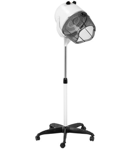 Der leistungsstarke Haartrockner aus dem Friseurbedarf von physa bietet neben höchsten Komfort für den Kunden eine Vielzahl an Styling- und Anwendungsmöglichkeiten: Sanfte Wellen oder wilde Locken, natürliche Strandfrisur oder mondäner Abendlook – selbst Conditioner und Masken entfalten unter der weißen Trockenhaube ihre volle Wirkung. Der Haarföhn mit Standfunktion ist dank 1.100 W und einer Temperatur bis 75 °C eine professionelle und zeitsparende Unterstützung in jedem Salon. Das Metallstativ kann über den gefederten Einstellknopf bequem in einer Höhe zwischen 125 und 155 cm stufenlos eingestellt werden. Mit fünf leichtlaufenden Rollen und einem 2 m langem Netzkabel ist der Haartrockner zudem ideal für den variablen Einsatz. Ein Timer mit einem Einstellbereich zwischen 0 bis 60 min erlaubt das Bedienen anderer Kunden, während die Haare trocknen oder die Pflege einwirkt. Dank der transparenten Haartrockner Haube können Kunden während der Behandlung das Geschehen im Salon verfolgen. Für einen höheren Komfort ist sie mit einem Durchmesser von 30 cm und einer Länge von 50 cm besonders großzügig gestaltet und kann im vorderen Bereich wie ein Visier aufgeklappt werden. Das Gerät funktioniert sowohl mit geöffneter als auch mit geschlossener Haube – dank der Steckerabdeckung ist die Verwendung in jeder Variante sicher. Zusätzlich bietet die Schutzklasse I eine störungsfreie wie gefahrlose Anwendung. Der Fön Friseur wurde speziell für die Bedürfnisse in professionellen Salons entwickelt und besonders robust konstruiert, um den Anforderungen des täglichen Geschäfts standzuhalten. So besteht das Stativ aus langlebigem Stahl mit teilweise verzinkter Oberfläche, die Haube aus langlebigem ABS und Räder wie Fußkreuz aus den hitzebeständigem Kunststoff PP. Die Fönhaube ist außerdem mit wenigen Handgriffen auf- oder bei Nichtbedarf wieder abgebaut und kann dann platzsparend verstaut werden. ...