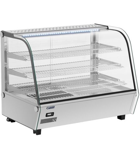 Die Heiße Theke RCWS-160S aus dem Gastronomiebedarf von Royal Catering eignet sich bestens zum Temperieren und Präsentieren verschiedenster Speisen und Gerichte wie Pizza, Sandwiches, Braten oder Gebäck. Die Warmhaltevitrine bietet Gästen am Buffet im Hotel, im Café oder Restaurant immer frische und sofort verzehrfertige Speisen – perfekt präsentiert und leicht zu entnehmen. Der 160 l fassende Innenraum der Warmhaltetheke kann mit einem effizienten und leistungsfähigen Heizelement von 1.500 W unverzüglich auf die gewünschte Temperatur erwärmt werden. Über einen Regler wird die Temperatur in einem Bereich von 30 bis 90 °C eingestellt. Dank des präzisen und stromsparenden Thermostats wird die eingestellte Gradzahl exakt gehalten. Im Innenraum der Theke befinden sich drei Ablageflächen, auf denen die Ware auf 81 x 40, 37 und 34 cm perfekt präsentiert werden kann. Das Heizsystem ist mit einer Wasserschale ausgestattet, die durch Verdunstung für eine milde Befeuchtung Ihrer Speisen sorgt. Dadurch wird ein durch die Wärme hervorgerufenes Austrocknen der kulinarischen Spezialitäten verhindert. Damit die Spezialitäten auch im hinteren Bereich perfekt präsentiert werden, sorgt die Innenbeleuchtung für das richtige Licht. Das Gehäuse ist aus stabilem Edelstahl, einem Material, das korrosionsresistent, hygienisch und langlebig ist sowie auch nach Jahrzehnten noch eine helle und glänzende Optik besitzt. Die Seiten sind aus gehärtetem Glas und damit besonders sicher als auch robust. An der Hinterseite befinden sich zwei Schiebetüren aus dem gleichen Glas – Speisen lassen sich sicher und komfortabel entnehmen oder auffüllen. Für einen stabilen Stand der Aufsatzvitrine sorgen vier Gummifüße, die zudem die Oberfläche des Unterbaus vor Kratzern schützen. Die Reinigung der Heißen Theke ist sehr einfach. Durch die glatten Glasflächen und die Verwendung von Edelstahl sind milde Reinigungsmittel ausreichend. Zusätzlich befindet sich unten im Gehäuse eine herausnehmbare Auffangschublade für Essensreste, die mit wenigen Griffen entleert werden kann. ...