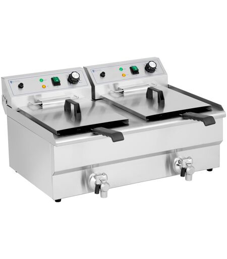 Elektro-Doppel-Fritteuse - 2 x 16 l - 6000 W - Ablasshahn - Royal Catering RCPSF 26ETH