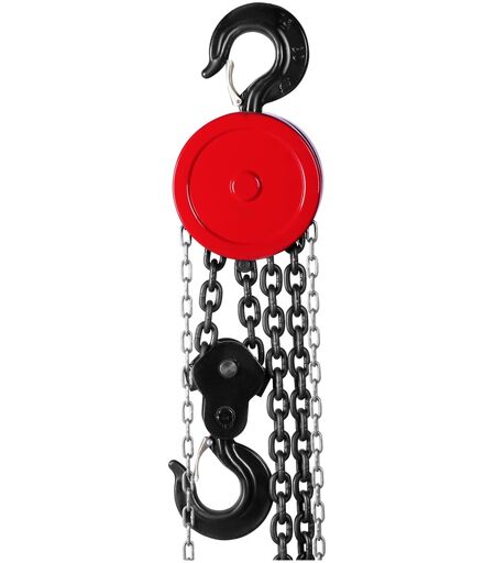 Einen Stahlträger, ein Motorblock oder ein Baugerüst – es gibt etliche Gegenstände, deren Last einfach zu schwer ist, um sie ohne Hilfsmittel zu bewegen. Genau dafür gibt es den Kettenzug SBS-FZ 5000/3M, der Ihre Kraft vervielfacht und das Anheben von schweren Lasten erleichtert. Durch seine flexible Bauweise ist er auf dem Bau genauso einfach einsetzbar wie in der Werkstatt oder in der Lagerhalle. Der Kettenflaschenzug von Steinberg Systems bietet eine Tragkraft von bis zu 5 t. Ermöglicht wird die hohe Belastbarkeit durch die robuste Konstruktion des Geräts aus Stahl. Ebenso stabil ist die Stahlkette, mit der die Lasten gehoben werden, und die sich durch Glieder mit einer Stärke von 10 mm auszeichnet. Darüber hinaus ist die Kette gehärtet und die Schrauben, Muttern sowie Bolzen sind verzinkt. Dadurch ist das Gerät vor Korrosion geschützt und entspricht höchsten Industriestandards. Mit dem Handkettenzug können Sie Gegenstände bis zu einer Höhe von 3 m heben, sodass Sie zum Manövrieren maximale Bewegungsfreiheit besitzen. Der Kettenflaschenzug wird dafür rein mechanisch bedient – Sie benötigen keine zusätzliche Stromquelle. Für eine optimale Kraftübertragung sorgen drei Zahnräder im Inneren des Geräts. Dadurch ist es besonders flexibel einsetzbar. Der Kettenzug wird mit einem stabilen Haken an einer Decke oder einem Gerüst befestigt. Ein zweiter Haken ist für die Last vorgesehen. Er kann mit einem Verschluss gesichert werden, sodass der Gegenstand sicher an der Kette hängt. Beim Anheben und Senken kann die Zugkette beliebig blockiert werden. Dadurch haben Sie immer die volle Kontrolle während der Arbeit mit dem Kettenhebezug. ...