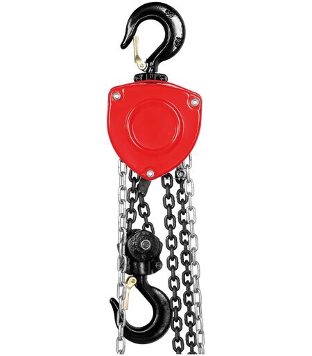 Einen Stahlträger, ein Motorblock oder ein Baugerüst – es gibt etliche Gegenstände, deren Last einfach zu schwer ist, um sie ohne Hilfsmittel zu bewegen. Genau dafür gibt es den Kettenzug SBS-FZ 2000/12M, der Ihre Kraft vervielfacht und das Anheben von schweren Lasten erleichtert. Durch seine flexible Bauweise ist er auf dem Bau genauso einfach einsetzbar wie in der Werkstatt oder in der Lagerhalle. Der Kettenflaschenzug von Steinberg Systems bietet eine Tragkraft von bis zu 2 t. Ermöglicht wird die hohe Belastbarkeit durch die robuste Konstruktion des Geräts aus Stahl. Ebenso stabil ist die Stahlkette, mit der die Lasten gehoben werden, und die sich durch Glieder mit einer Stärke von 6 mm auszeichnet. Darüber hinaus ist die Kette gehärtet und die Schrauben, Muttern sowie Bolzen sind verzinkt. Dadurch ist das Gerät vor Korrosion geschützt und entspricht höchsten Industriestandards. Mit dem Handkettenzug können Sie Gegenstände bis zu einer Höhe von 12 m heben, sodass Sie zum Manövrieren maximale Bewegungsfreiheit besitzen. Der Kettenflaschenzug wird dafür rein mechanisch bedient – Sie benötigen keine zusätzliche Stromquelle. Für eine optimale Kraftübertragung sorgen drei Zahnräder im Inneren des Geräts. Dadurch ist es besonders flexibel einsetzbar. Der Kettenzug wird mit einem stabilen Haken an einer Decke oder einem Gerüst befestigt. Ein zweiter Haken ist für die Last vorgesehen. Er kann mit einem Verschluss gesichert werden, sodass der Gegenstand sicher an der Kette hängt. Beim Anheben und Senken kann die Zugkette beliebig blockiert werden. Dadurch haben Sie immer die volle Kontrolle während der Arbeit mit dem Kettenhebezug. ...