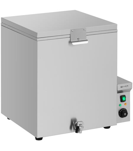 Bevor Sie das Gefieder von Geflügel wie Huhn, Ente oder Gans rupfen, empfiehlt es sich, die Tiere vorher zu brühen. Dafür ist der Brühkessel Geflügel WIE-CS-120 die erste Wahl, um diesen vorbereitenden Schritt effektiv und schnell umzusetzen. Der professionelle Brühkessel für Geflügel von Wiesenfield ist ein unerlässlicher Helfer in der Landwirtschaft oder einer Schlachterei, wenn Sie Hühner und anderes Geflügel von Ihrem Federkleid befreien wollen, um es weiter zu verarbeiten. Der Brühautomat Geflügel hat ein Fassungsvermögen von 120 l und ist ausgelegt für 7 - 8 Hühner pro Arbeitsgang. Dabei erreicht das leistungsstarke Heizelement mit 3000 W sehr schnell die gewünschte Temperatur, bei Hühnern wäre das 60 - 65 °C. Für die Vorbereitung zum Rupfen müssen die Tiere nur 70 - 90 s gebrüht werden, dadurch erweist sich der Geflügel Brühkessel als besonders effektiv. Ein Korb aus Edelstahl erleichtert das Einbringen und Entnehmen des Geflügels. Je nach Größe des Geflügels sollte die Temperatur angepasst werden, dafür steht Ihnen ein großer Drehknopf zur Verfügung, die maximal wählbare Temperatur im Wassertank liegt bei 85 °C, wobei für die meisten Geflügelarten nur eine Temperatur zwischen 60 - 70 °C benötigt wird. Das Thermostat hält zuverlässig die gewählte Temperatur, sodass sich das Gerät optimal für jede Geflügelsorte einsetzen lässt. Ein An/Aus-Schalter rundet die einfache wie zuverlässige Handhabung des Brühkessel Geflügel ab. Das Gehäuse ist aus pflegeleichtem Edelstahl gefertigt, der sich hervorragend für die Verarbeitung von Lebensmitteln eignet und sich selbst bei hohen Temperaturen und häufigen Brühvorgängen durch seine Langlebigkeit auszeichnet. Das Heizelement ist mit einer Abdeckung versehen, das die Reinigung des Innenraums ebenso erleichtert wie der integrierte Ablasshahn. Für einen sicheren Stand sorgen die rutschfesten Gummifüße. ...