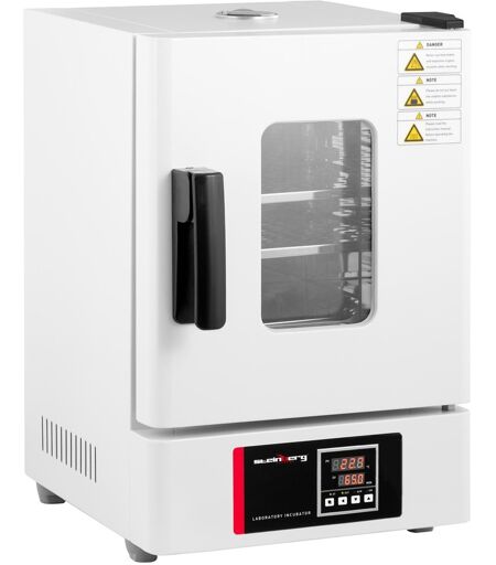 Mikroorganismen, Zellkulturen oder Keimlinge haben eines gemeinsam: Sie brauchen konstante Temperaturen, um sich optimal im Labor zu entwickeln. Dafür sorgt der Brutschrank Labor SBS-LI-18 von Steinberg Systems. Dank optimaler Temperatursteuerung und einem robusten Gehäuse ist er in jedem Labor für Lebensmittelanalytik oder Forschung ein zuverlässiges Hilfsmittel, das sich einfach wie effektiv einsetzen lässt. Der Inkubator Labor sorgt für optimale Verhältnisse für das Beschickungsgut mithilfe von PID-Programmen, die über das Touch-Bedienfeld eingestellt und die LED-Anzeige überprüft werden können. Es bietet Funktionen wie die Zeit- und Temperatureinstellung, Übertemperaturschutz, Timer und Abschaltautomatik. Der Temperaturregler hält präzise die eingestellte Temperatur zwischen Umgebungstemperatur + 5 °C bis 65 °C in der eingestellten Zeit von 0 - 9999 min, wobei die niedrigste Temperatur nie die Raumtemperatur unterschreitet. Diese wird über Sensoren kontinuierlich überprüft und bei Abweichungen selbstständig korrigiert. Dadurch hält der Brutschrank Labor Temperaturen mit einer Genauigkeit von ± 2 °C. Die Tür zum geräumigen Innenraum ist luftdicht mit einer Silikongummidichtung verschlossen und sorgt so für einen minimalen Temperaturverlust während des Brütens von Kulturen oder Bakterien. Ebenso hitzebeständig ist das Sichtfenster aus gehärtetem Glas, das Ihnen bei Bedarf Einblick auf den Brutfortschritt gewährt. Der Innenraum ist aus Edelstahl und damit äußerst pflegeleicht und unempfindlich vor Korrosion oder anderen Umgebungseinflüssen. Mit einem Fassungsvermögen von 18 l ist der Brutschrank sehr kompakt und auch auf engen Raum einsetzbar. Dank in der Höhe verstellbarer Einlagen kann der Innenraum optimal genutzt und an unterschiedliche Proben oder Kulturen angepasst werden. Das Gehäuse ist aus robustem, gerolltem Stahl, der mit einer elektrostatischen Beschichtung versehen wurde, die die Außenhülle äußerst langlebig macht. Dadurch hält der Labor Inkubator auch großen Belastungen stand und kann mühelos gereinigt werden. ...