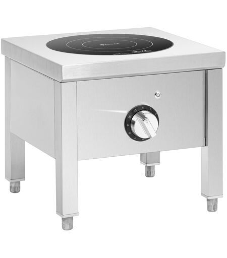 Auf der Induktionsplatte von Royal Catering kochen Sie schnell, energieeffizient und sicher. Eine stromdurchfließende Spule erzeugt ein magnetisches Wechselfeld, das Töpfe und Pfannen unverzüglich und stromsparend erwärmt; die Kochplatte Induktion selbst bleibt kalt. Die separate Kochfläche mit einem Durchmesser von 30 cm ist perfekt für geeignete Töpfe und Pfannen mit einem Durchmesser ab 20 cm. Dank der hohen Leistungsfähigkeit und langlebigen Qualität passt die freistehende Induktionskochplatte perfekt in Profiküchen von Restaurants und Kantinen oder ist durch den unkomplizierten Transport eine sinnvolle Erweiterung für Caterings, Buffets, in Studentenwohnheimen oder in Sommer- und Ferienhäusern. Dank des starken Heizelements mit 5000 W in Kombination mit der effizienten Technologie erreicht das Induktionskochfeld binnen kürzester Zeit die gewünschte Temperatur bis 260 °C. Diese stellen Sie intuitiv und komfortabel am großen Drehschalter ein. So bereiten Sie jedes Gericht schnell und unter optimalen Bedingungen zu. Das Gehäuse des freistehenden Induktionskochers besteht aus Edelstahl. Das Material überzeugt nicht nur durch eine hohe Resistenz gegenüber äußeren Einflüssen und eine lange Lebensdauer, sondern ist auch unkompliziert in Reinigung und Pflege. ...