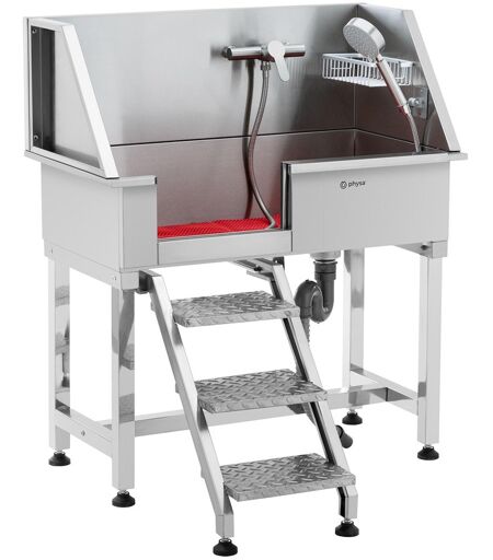 physa Hundebadewanne - Edelstahl - bis 60 kg - mit Treppe PHY-PWS-03
