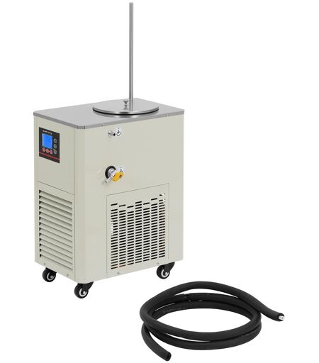 Der Umlaufkühler von Steinberg Systems ist die leistungsstarke Lösung für vielfältige Kühlaufgaben in Labor oder Industrie. Sie verwenden ihn, um Präzisionsgeräte wie Rotationsverdampfer auf einer vorgegebenen Temperatur zu halten oder die Hitzeentwicklung bei Lasern zu reduzieren. Dank kurzer Abkühlzeiten und eines hohen Wirkungsgrads ist der Flüssigkeitskühler mit geschlossener Kompressorkühlung und intelligentem Steuerungssystem eine effiziente und kostensparende Alternative zur Kühlung mit Leitungswasser. Der Laborkühler überzeugt durch eine hohe Genauigkeit von 0,2 °C. Über das intuitive Bedienfeld mit LC-Display haben Sie alle Werte im Blick. Der über einen Mikroprozessor gesteuerte PID-Regler garantiert die Präzision der eingestellten Temperatur von -10 °C bis 20 °C. Eine schnelle und zuverlässige Kühlleistung stellt der integrierte Kompressor sicher, der mit dem umweltverträglichen Kühlmittel R290 arbeitet. Dank einer Umlaufgeschwindigkeit von 20 l/min ermöglicht der Kreislaufkühler eine zuverlässige und gleichmäßige Kühlung aller angeschlossenen Geräte. Der Umlaufkühler ist aus Edelstahl und verzinktem Stahlblech gefertigt. Dieser Materialmix ist besonders korrosionsbeständig und daher optimal für die Verwendung im Labor oder anderen Umgebungen geeignet, in denen Flüssigkeiten eingesetzt werden. Zudem ist das Gerät vor Überhitzung oder Überstrom geschützt. Insgesamt erweist sich der Umwälzkühler als äußerst langlebig und zuverlässig im täglichen Betrieb. Der Laborkühler benötigt dank des kompakten Designs nur eine geringe Stellfläche, sodass Sie ihn auch auf kleinen Arbeitsflächen platzsparend verwenden. Er ist optimal für den Einsatz in Laboren der Medizin, des Gesundheitswesens, der chemischen Industrie oder der industriellen Fertigung von Lebensmittel geeignet. Überall überzeugt er durch erstklassige, kühlende Eigenschaften bei sehr ruhigem Betrieb. ...