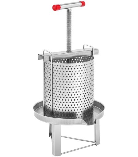 Mit Hilfe der Wachspresse von Wiesenfield extrahieren Sie Ihren wertvollen Bienenhonig bis auf den letzten Tropfen aus den Waben. Das widerstandsfähige Modell trennt mittels Handantrieb den Wachs von den zuvor entdeckelten Waben. Nutzen Sie diese schonende Kaltpressung im professionellen oder Hobby-Bereich. Für Zementhonig und nicht schleuderfähige Waben: Nutzen Sie die effiziente Bienenwachspresse für Waben, die sich nicht schleudern lassen. Außerdem eignet sich die Presse, um Melizitosewaben, in denen der Honig kristallisiert ist, zu verarbeiten. Das Modell besteht aus widerstandsfähigem Edelstahl und hält sowohl den hohen hygienischen Anforderungen in der Imkerei also auch dem Pressdruck optimal stand. ...