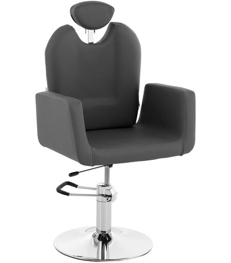 Ergänzen Sie mit dem Friseurstuhl LIVORNO GRAY von physa Ihren Friseurbedarf und verschönern Sie Ihren Salon. Durch seine graue Farbe passt er in jede Umgebung und setzt Akzente. Der Friseurstuhl mit Nackenstütze wird Sie und Ihre Kundschaft durch maximalen Komfort begeistern – ob im Friseursalon, im Tattoo- oder Kosmetikstudio. Auf dem ergonomischen Friseurstuhl sitzt Ihre Kundschaft äußerst bequem. Dafür sorgt der hochwertige Schaumstoff, welcher als Polsterung dient. Er ist weich und formbeständig. Der robuste Kunstlederbezug ist zudem spielend leicht zu reinigen sowie staub- und wasserabweisend. Der Friseurstuhl ist zwischen 510 - 650 mm höhenverstellbar. Durch die, vom Sockel abgehende, Hydraulikpumpe stellen Sie den Sitz mühelos individuell ein. Ein weiterer Hebel bringt den Friseurstuhl in eine komfortable, zurückgelehnte Position. Die Kopfstütze lässt sich um 200 mm herausziehen, um die Position noch angenehmer zu machen. Das Gestell des Friseursessels besteht aus robustem Stahl. Dadurch hat der 150 kg tragende Stuhl einen sicheren Halt und eine hohe Langlebigkeit. Die verchromten Metallakzente sorgen für das elegante Design. Für eine optimale Arbeitsposition lässt sich der Friseurstuhl um 360° drehen und einfach ausrichten. ...