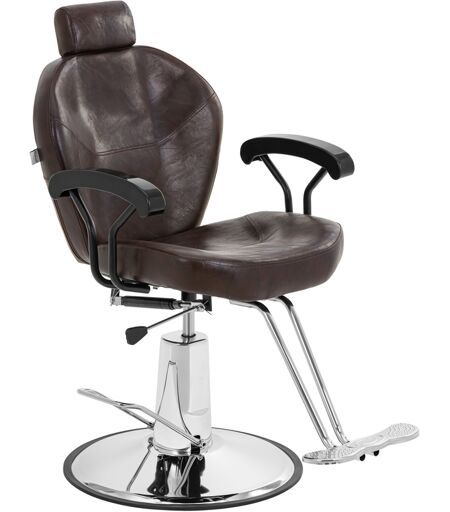Schaffen Sie für Ihre Kundschaft einen angenehmen Platz mit dem Friseurstuhl Ilford und sorgen Sie für einen stilvollen Akzent in Ihrem Salon. Das dezente Design in Braun fügt sich in jede Umgebung ein. Auf dem ergonomischen Barberstuhl sitzt Ihre Kundschaft äußerst bequem. Dafür sorgen die hohen Armlehnen sowie der hochwertige Schaumstoff, welcher als Polsterung dient. Er ist weich und formbeständig zugleich. Den langlebigen Kunstlederbezug reinigen Sie spielend leicht. Darüber hinaus überzeugt er durch staub- und wasserabweisende Eigenschaften. Der Friseurstuhl mit Fußstütze und Rückenlehne wird Sie und Ihre Gäste durch maximalen Komfort begeistern – ob im Friseursalon, im Tattoo- oder Kosmetikstudio. Die Sitzhöhe des Friseursessels stellen Sie mühelos mit einer Hydraulikpumpe zwischen 52 - 64 cm ein. Zusätzlich drehen Sie den Stuhl einfach in die Position, aus der heraus Sie am besten arbeiten und stellen ihn fest. So erreichen Sie mit wenigen Handgriffen immer eine optimale Arbeitsposition, die Sie auch an langen Tagen nicht ermüden lässt. Für eine entspannte Haltung Ihrer Kundschaft sorgen eine Kopf - und die entlastende Fußstütze. Das Gestell des Friseurstuhls mit Fußstütze besteht aus hochwertig legiertem Stahl. Die stabile Konstruktion trägt sicher eine Last von 150 kg und verleiht dem Stuhl Halt sowie eine hohe Langlebigkeit. Für zusätzliche Stabilität sorgt die großzügige Basis mit einem Durchmesser von 58 cm. Die glatten Oberflächen unterstreichen das stilvolle Design. ...