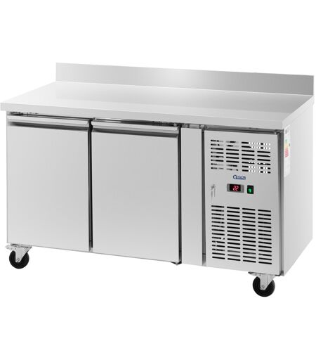 Der Kühltisch von Royal Catering sorgt für frische Lebensmittel zum schnellen Weiterverarbeiten. Das professionelle Kühlgerät wurde für Restaurants, Cafés, Schnellbedienungsbars und Hotels entwickelt – aber auch für Pizzerien und Salatbars, Döner- und Falafel-Läden ist dieses Produkt von unschätzbarem Wert. Der Gastro-Kühltisch lässt sich besonders einfach verschieben. Das Gerät besitzt vier Schwerlastrollen, die auch auf unebenen Böden geschmeidig laufen. Mit zwei Feststellbremsen blockieren Sie die Räder, sobald der Kühltresen am gewünschten Ort steht. Der Pizzakühltisch punktet mit einem Temperaturbereich von 2 - 8 °C. Die Einstellung der Temperatur erfolgt intuitiv über ein digitales Bedienfeld, welches Ihnen stets den aktuellen Status des Gerätes anzeigt. Der Kühltresen überzeugt mit der Energieeffizienzklasse B. Das Gerät nutzt die Umluftkühlung. Dadurch herrscht auf allen Ebenen eine gleichmäßige Temperatur. Auch häufiges Öffnen der zwei Türen und damit das Entweichen der kalten Luft gleicht das außen liegende Kühlsystem schnell aus, indem es beständig kühle Luft in den Innenraum bläst. Das Modell arbeitet dank 6 cm starker Isolierung und des klimaschonenden Kühlmittels R290 sehr sparsam. Zudem verfügt der Kühltisch über eine automatische Abtaufunktion, die Stromkosten und Arbeitszeit reduziert. Das große Fassungsvermögen von 260 l ist einer der Hauptvorteile dieses Modells. Unter der Arbeitsfläche finden Sie zwei geräumige Kühlfächer, die Sie jeweils mit einem höhenverstellbaren Einlegerost unterteilen. Der sanfte Öffnungs- und Schließmechanismus der zwei Schwenktüren erleichtert die Handhabung im hektischen Alltag, gerade wenn Sie keine Hand frei haben. Die Tür zum Kühlsystem ist abschließbar. Eine Aufkantung am Gastro-Kühltisch schützt Wände und Umgebung vor Spritzwasser, Schmutz und Beschädigung. Das Gehäuse des Kühltischs besteht aus hochwertigem Edelstahl. Dieses Material ist biologisch inert, sodass es im Kontakt mit Lebensmitteln nicht reagiert und daher gesundheitlich unbedenklich ist. Daneben ist es robust und unempfindlich gegenüber Korrosion. Alle Oberflächen des Pizzakühltischs reinigen Sie dank der geringen Porosität sehr schnell sehr gründlich. Mit dem Kühltisch sind Ihre Produkte bei der richtigen Temperatur gelagert und können direkt auf der 136 x 70 cm großen Arbeitsplatte weiterverarbeitet werden. ...