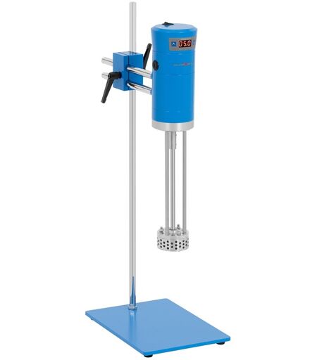Der Homogenisator von Steinberg Systems zerkleinert und vermischt effizient eine Vielzahl von Materialien und erzeugt eine homogene Mischung auf Mikro- oder Nanopartikelebene. Sie setzen ihn effektiv in der Forschung, Produktentwicklung oder Qualitätssicherung ein. Das Tischgerät verfügt über ein Stativ, das Sie je nach Behälter in der Höhe einstellen. Der großzügige Standfuß bietet reichlich Platz für große Gefäße und sorgt für Stabilität während der Verarbeitung. Der leistungsstarke wie kompakte 510-W-Motor in einem robusten Aluminium-Druckgussgehäuse erreicht Geschwindigkeiten von 2000 - 11 000 U/min, die Sie je nach Anwendung und Substanz mithilfe des LED-Displays präzise einstellen. Der Arbeitskopf aus hochwertigem Edelstahl ist pflegeleicht, korrosionsbeständig und reagiert nicht mit Chemikalien, Säuren oder Laugen. Damit entspricht er allen Anforderungen an die Hygiene im Labor. Um den Kopf und Stator-Standardaufsätze zu reinigen, lösen Sie sie mit wenigen Handgriffen. Mit einem Durchmesser von 7 cm eignet der Kopf optimal für Proben mit einem großem Volumen von 500 - 40 000 ml. Somit eignet sich das Gerät zum Mischen hochviskoser Flüssigkeiten mit einer hohen Kapazität im Labor, Emulgieren von Wirkstoffpartikeln sowie zur Verarbeitung kosmetischer Emulsionen und flüssiger Lebensmittel. ...