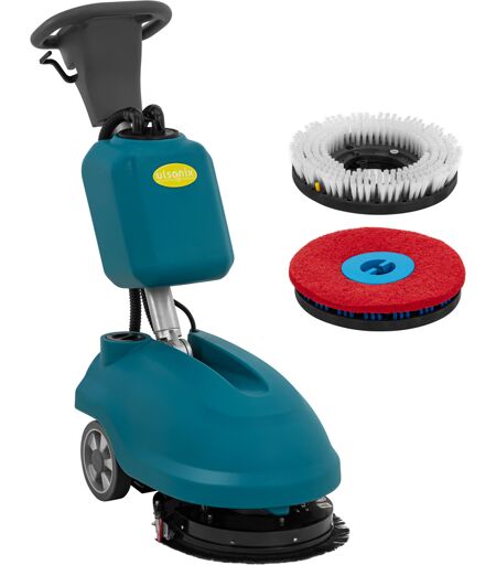 Zum schnellen Aufwischen reicht der Wischmopp, für große Flächen ist dagegen die Scheuersaugmaschine von ulsonix erste Wahl. Nutzen Sie ihre Reinigungskraft für beanspruchte Böden im Supermarkt oder in Lagerhallen. Oder sorgen Sie für überzeugenden Glanz auf großen Flächen in Autohäusern oder Museen. Die Akku-Scheuersaugmaschine überzeugt durch eine hohe Gesamtleistung. Mit 400 W bringen Sie die 35 cm breite Bürste auf eine Geschwindigkeit von 160 U/min und lösen mit einem Bürstendruck von 32 kg effektiv Verschmutzungen. Die 58 cm messende Sauglippe entfernt anschließend mit einer Leistung von 550 W das schmutzige Wasser. Mit diesen fein aufeinander abgestimmten Leistungswerten reinigen Sie Flächen von bis zu 1500 m²/h. Mit einer Akkuleistung von bis zu 3 h erreichen Sie optimale Reinigungsergebnisse selbst im Dauereinsatz. Die LCD-Anzeige informiert Sie jederzeit über den aktuellen Batteriestand. Zudem ermöglichen ein 15 l fassender Frisch- sowie ein Schmutzwassertank mit einem Volumen von 22 l lange Arbeitseinsätze ohne Unterbrechungen. Die ausbalancierte Konstruktion der Scheuersaugmaschine manövrieren Sie selbst in engen Gängen sicher. Insgesamt ist die Bodenreinigungsmaschine auf eine einfache wie bequeme Handhabung ausgelegt, wobei Sie die Bürste wie die Absauglippe mit wenigen Schaltern steuern. Über den klappbaren, ergonomischen Griff passen Sie das Gerät für eine komfortable Bedienung an Ihre Körpergröße an und verstauen es platzsparend. ...