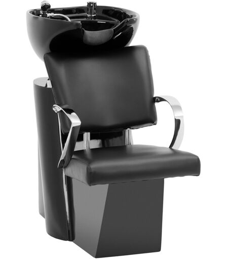 Der frei stehende Friseurwaschplatz aus dem Friseurbedarf von physa ist die ideale Lösung für Ihren Salon! Auf dem großzügigen Sessel mit elegantem und hygienischem Kunstlederbezug lehnen sich Ihre Gästen bequem für die Haarwäsche zurück. Das integrierte Keramikwaschbecken mit Brause und Mischbatterie sowie Silikonaussparung für den Nackenbereich macht dieses Modell zu einem zuverlässigen und attraktiven Ausstattungsstück für Ihren Salon. Die robuste Basis verbindet das Waschbecken und den Friseurstuhl auf eine elegante und ansprechende Art und bietet zudem die nötige Stabilität. Die großzügige Polsterung der Sitzfläche und der Rückenlehne des Friseurwaschsessels garantieren Ihrer Kundschaft höchsten Komfort während des Haarewaschens. Das Waschbecken bietet mit den Dimensionen 600 x 505 mm reichlich Platz für eine gründliche Haarwäsche. Den im Friseur-Waschbecken integrierten Brauseschlauch mit einer Länge von 470 mm ziehen Sie entsprechend Ihrer Arbeitsweise aus, während Sie die Wasserstärke über die Einhand-Mischbatterie unkompliziert regulieren. Das Rückwärtswaschbecken für Friseure neigen Sie bis zu 30°. So finden Sie für jeden Gast die optimale und individuelle Einstellung. Für schnelle, aber gleichzeitig gründliche Hygiene verfügt der Friseur-Waschplatz über praktische Extras: Im Ausguss des Rückwärtswaschbeckens befindet sich ein Haarsieb, welches Sie schnell sowie einfach reinigen und das einem verstopften Abfluss vorbeugt. Auch die Silikonaussparung des Friseurwaschsessels nehmen Sie zur gründlichen Reinigung unkompliziert ab. ...