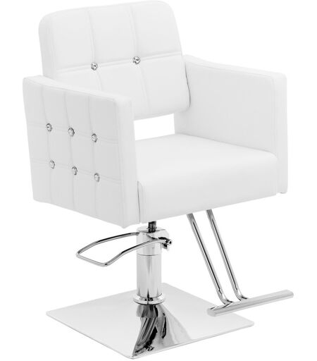Schaffen Sie für Ihre Kundschaft einen angenehmen Platz mit dem Friseurstuhl Cottam und sorgen Sie für einen stilvollen Akzent in Ihrem Salon. Das dezente Design in Weiß fügt sich in jede Umgebung ein. Der Friseurstuhl mit Fußstütze und gepolsteter Rückenlehne wird Sie und Ihre Gäste durch maximalen Komfort begeistern – ob im Friseursalon, im Tattoo- oder Kosmetikstudio. Auf dem ergonomischen Barberstuhl sitzt Ihre Kundschaft äußerst bequem. Dafür sorgen die hohen Armlehnen sowie der hochwertige Schaumstoff, welcher als Polsterung dient. Er ist weich und formbeständig zugleich. Den langlebigen Kunstlederbezug reinigen Sie spielend leicht. Darüber hinaus überzeugt er durch staub- und wasserabweisende Eigenschaften. Die Sitzhöhe des Friseursessels stellen Sie mühelos mit einer Hydraulikpumpe zwischen 45 - 55 cm ein. Zusätzlich drehen Sie den Stuhl einfach in die Position, aus der heraus Sie am besten arbeiten und stellen ihn fest. So erreichen Sie mit wenigen Handgriffen immer eine optimale Arbeitsposition, die Sie auch an langen Tagen nicht ermüden lässt. Für eine entspannte Haltung Ihrer Kundschaft verstellen Sie die Fußstütze um 15 cm. Das Gestell des Friseurstuhls mit Fußstütze besteht aus robustem wie elegantem Edelstahl. Die stabile Konstruktion trägt sicher eine Last von 150 kg und verleiht dem Stuhl Halt sowie eine hohe Langlebigkeit. Für zusätzliche Stabilität sorgt der große Standfuß mit einer Fläche von 50 x 50 cm. Die glatten Edelstahloberflächen unterstreichen das stilvolle Design. ...