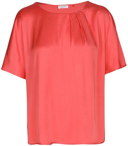 Damen Blusenshirt aus glänzender Baumwoll-Mix Rundhalsausschnitt mit gelegten Falten Halbarm Unifarben Gerade geschnitten Farbbezeichnung: Coral Material: 47% Baumwolle, 45% Modal, 8% Elasthan ...
