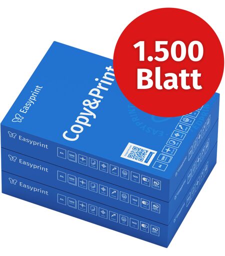 Easyprint Druckerpapier Kopierpapier 1500 Blatt 3 x 500 A4 Premium Hochweiß CIE 160 Testsieger PEFC Umweltzertifikat