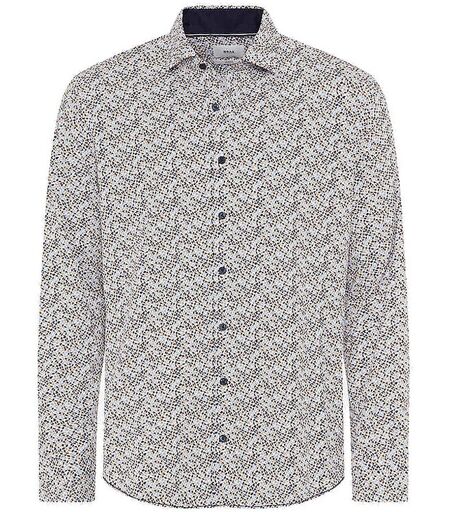 Herren Hemd aus Baumwoll-Stretch Kentkragen Schließt mit Knopfleiste Langarm mit geknöpften Manschetten Minimaler Alloverprint Körpernahe Passform Farbbezeichnung: Camel Material: 97% Baumwolle, 3% Elasthan ...