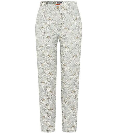 Damen Hose aus Baumwoll-Stretch Höhere Leibhöhe Schließt mit Knopf- und Reißverschluss Seitliche Eingrifftaschen Alloverprint Sehr schmaler Beinverlauf 6/8 Länge Farbbezeichnung: 03 Silver Grey Material: 97% Baumwolle, 3% Elasthan ...