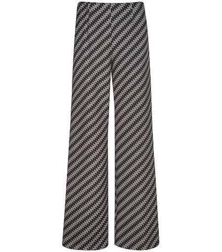 Damen Hose aus feinem Gewebe Schließt mit Reißverschluss an der Seite Mittlere Leibhöhe Allover Print Gerader Beinverlauf Farbbezeichnung: 02 Black/Taupe Material: 91% Polyester 9% Elasthan ...