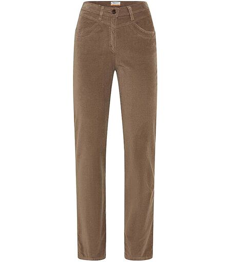 Damen Businesshose aus Baumwoll-Viskose-Mischung mit Stretch-Anteil Mittlere Leibhöhe Schließt mit Knopf- und Reißverschluss 5-Pocket-Style Gerader Beinverlauf Unifarben Farbbezeichnung: 55 Taupe Material: 67% Baumwolle, 31% Viskose, 2% Elasthan ...