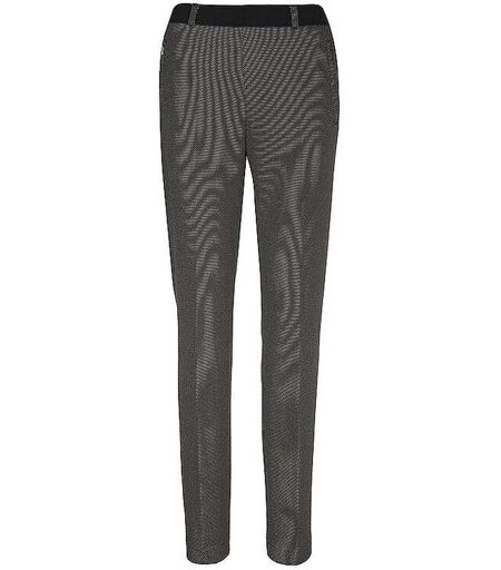Damen Businesshose aus weichem Viskose-Mix Elastischer Bund Seitliche Eingriffstaschen Mittlere Leibhöhe Minimalmuster Schmale Passform Farbbezeichnung: 02 Black Material: 80% Polyester 15% Viskose 5% Elasthan ...