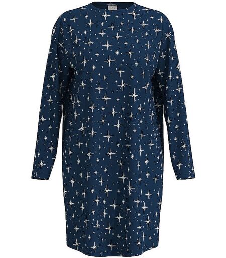 Damen Nachthemd aus reiner Baumwolle Rundhalsausschnitt Langarm Allover-Sternen-Print Knielang Bequem geschnitten Farbbezeichnung: Deep Marine Zertifizierung: STANDARD 100 by OEKO-TEX® Material: 100% Baumwolle ...