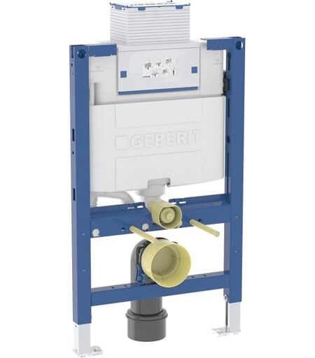 "Geberit Duofix Element für Wand-WC, 82 cm, mit Omega UP-Spülkasten 12 cm Verwendungszwecke Für Metall- und Holzständerwände Für Geberit Duofix Systemwände Eigenschaften Rahmen für Wand-WCs mit Anschlussmassen nach EN 33 und Ausladung bis 70 cm Montage- und Instandhaltungsarbeiten am UP-Spülkasten werkzeuglos Mit Leerrohr für Wasserzuleitung für Geberit AquaClean Dusch-WCs und für Anschlusskabel Befestigungsmöglichkeit für Elektroanschluss sowie Power & Connect Box 50 Jahre Ersatzteilsicherheit UP-Spülkasten einteilig mit geschweißtem Spülrohr Technische Eigenschaften Fließdruck (kPa) - min. bis max.: 10–1000 kPa Wassertemperatur (°C) - max.: 25 °C Spülmenge Werkseinstellung (l): 6 / 3 l Große Spülmenge Einstellbereich (l): 4 / 4,5 / 6 / 7,5 l Kleine Spülmenge Einstellbereich (l): 2–4 l Durchfluss bei 3 bar (l/min): 9,6 l/min Durchfluss bei 3 bar (l/s): 0,16 l/s Mindestfließdruck für Berechnungsdurchfluss (kPa): 10 kPa Berechnungsdurchfluss (l/s): 0,09 l/s Werkstoff: Stahl Höhenverstellbar: Nein B / Breite (cm): 50 cm H / Höhe (cm): 82 cm T / Tiefe (cm): 14 cm Zusätzlicher Lieferumfang Wasseranschluss R 1/2"", MasterFix- und MeplaFix-fähig, mit integriertem Eckventil und Handrad Bauschutz für Serviceöffnung Anschlussset für WC, ø 90 mm Anschlussbogen 90° aus PE-HD, ø 90 mm Übergangsmuffe aus PE-HD, ø 90 / 110 mm Befestigungs- und Schutzmaterial" ...