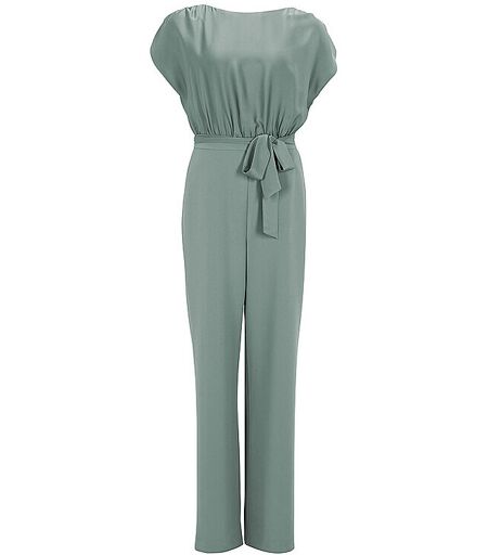 Eleganter Damen Jumpsuit aus Chiffon Rundhalsausschnitt Angeschnittene Ärmel Raffung an den Schultern Bindeband bei der Taille Rückenteil mit Cut Out und Knopf zum öffnen Anliegend geschnitten Seitliche Eingrifftaschen Gerader Beinverlauf Unifarben Farbbezeichnung: Soft Green Material: 98% Polyester, 2% Elasthan ...