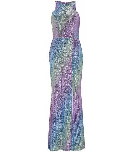 Damen Abendkleid aus fließendem Gewebe Rundhalsausschnitt Schließt im Nacken mit zwei Knöpfen Cut Out am Rücken Ohne Arm Regebogen Pailletten Figurbetonte Passform Langer Schlitz an der Vorderseite Farbbezeichnung: Soft Green Fashion Lilac Material: 95% Polyester, 5% Elasthan ...