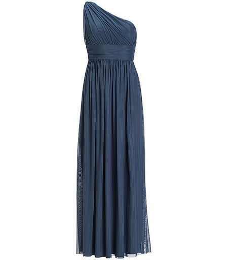 Langes Damen Abendkleid aus Mesh One Shoulder Ärmellos Unifarben Länge: Ca: 146 cm Farbbezeichnung: Timeless Blue Material: 80 % Polyester, 20 % Elasthan ...