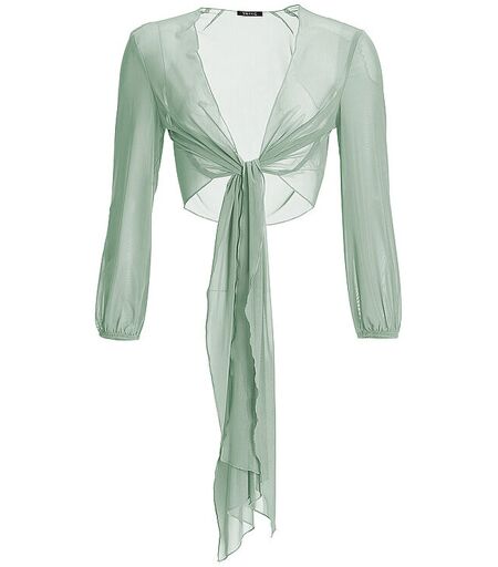 Damen Wickel-Bolero aus Mesh V-Ausschnitt Langarm mit schmalem Bündchen Semitransparenter Stoff Unifarben Farbbezeichnung: Postachio Green Material: 80% Polyester, 20% Elasthan ...