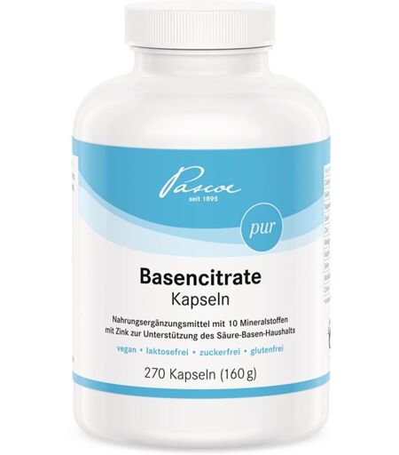 Anwendungsgebiet von Basencitrate KapselnBasencitrate Kapseln enthalten eine sorgfältig abgestimmte Mischung aus zehn Mineralstoffen, einschließlich Spurenelementen, die den Körper mit essenziellen Nährstoffen versorgen. Eine unausgewogene Ernährung, Bewegungsmangel, exzessiver Sport sowie unzureichende Ruhe und Erholung sind typische Merkmale unseres hektischen Alltags. Besonders unsere Ernährungsgewohnheiten können den oft unbemerkten, aber spürbaren Säure-Basen-Haushalt erheblich beeinflussen. Menschen, die überwiegend Getreideprodukte, eiweißreiches Fleisch oder Milchprodukte konsumieren, laufen Gefahr, eine chronische Übersäuerung zu entwickeln. Der Grund dafür ist, dass diese Lebensmittel im Körper sauer verstoffwechselt werden. Obst und Gemüse hingegen wirken im Körper basisch und sind daher entscheidend für die Aufrechterhaltung eines ausgewogenen Säure-Basen-Haushalts. Wirkstoffe / Inhaltsstoffe / ZutatenZutaten von Basencitrate Kapseln: Calciumcitrat, Magnesiumcitrat, Kaliumcitrat, Überzugsmittel: Hydroxypropylmethylcellulose, Eisencitrat, Chromchlorid, Zinkcitrat, Mangancitrat, Natriummolybdat, Natriumselenit, Kupfercitrat. Nährstoffe pro Tagesverzehrsempfehlung=9 Kapseln % NRV* Calcium 400 mg 50 % Kalium 350 mg 17 % Magnesium 200 mg 53 % Eisen 5 mg 35 % Zink 5 mg 50 % Mangan 2 mg 100 % Kupfer 1000 µg 100 % Selen 55 µg 100 % Molybdän 50 µg 100 % Chrom 40 µg 100 % * % Nährstoffbezugswert (Referenzmenge der EU-LMIV) GegenanzeigenBei bekannter Überempfindlichkeit gegenüber einem der oben genannten Inhaltsstoffe sollte das Produkt nicht angewendet werden.DosierungVerzehrempfehlung von Basencitrate Kapseln: 9 Kapseln täglich mit ausreichend Flüssigkeit schlucken. Die angegebene empfohlene tägliche Verzehrmenge nicht überschreiten.Patientenh ...