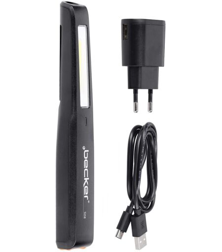 f.becker_line LED Akku Arbeitsleuchte Inspektionsleuchte Die LED Akku Stiftlampe ist vielseitig und ideal für enge Räume. Vielseitige, flexible Stiftlampe für Pkw und Lkw. Eigenschaften: Magnetisch Betriebszeit bis zu 28 Stunden Beleuchtungsstufen: 90 bis 100/250 lm Abstrahlwinkel: 120° Farbtemperatur: 6.000 K Schutzklasse: IP54 / IK07 Betriebsart: Akku Akkukapazität: 1.050 mAh Ladekabel-Typ: USB-C-Kabel und 5V 1A Adapter Ladezeit: 2,5 Stunden Lichtstrom für Spotlicht [lm]:90 lm Betriebsart:Akkupack Schutzart (IP-Code):IP54 Anschlussart Eingang:USB-C Lampenart:LED Lichtstrom im Eco-Modus [lm]:100 lm Betriebsdauer im Eco-Modus bis [h]:28 h Stoßfestigkeitsgrad (IK-Code):IK07 (bis zu 2,0J) Ladezeit [Std.]:2,5 Std. Lichtstrom im Boost-Modus [lm]:250 lm Batterie-Kapazität [mAh]:1.050 mAhDie LED Akku Stiftlampe ist vielseitig und ideal für enge Räume. Vielseitige, flexible Stiftlampe für Pkw und Lkw. ...