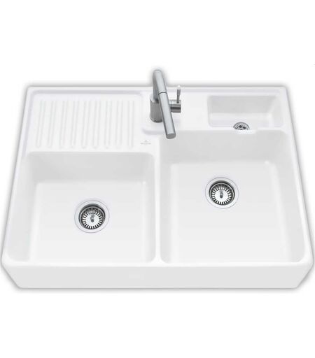 Villeroy & Boch Sp�lstein Doppelbecken Stone White - 6323 91 RW Keramiksp�le Handbet�tigung inkl. Hahnloch 1
