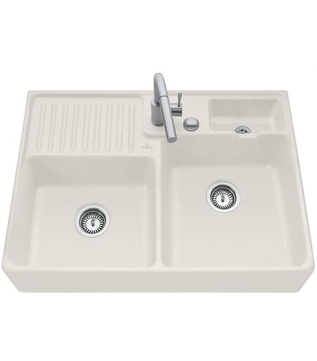 Villeroy & Boch Sp�lstein Doppelbecken Crema - 6323 92 KR Keramiksp�le Excenter inkl. Hahnl�cher 1+2