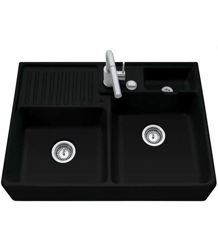 Villeroy & Boch Sp�lstein Doppelbecken Ebony - 6323 92 S5 Keramiksp�le Excenter inkl. Hahnl�cher 1+2