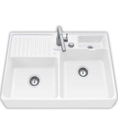 Villeroy & Boch Sp�lstein Doppelbecken Stone White - 6323 92 RW Keramiksp�le Excenter inkl. Hahnl�cher 1+2