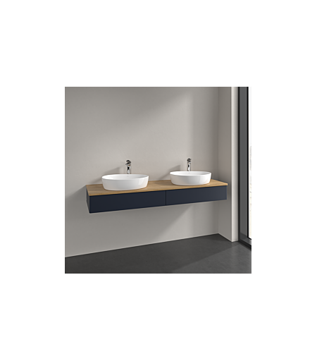Villeroy und Boch Antao Waschtisch-Unterschrank L17051HG 160x19x50cm, Hahnlochbohrung, Waschbeckenplattenfarbe honey oak, midnight blue matt lacquer, Mit Beleuchtung