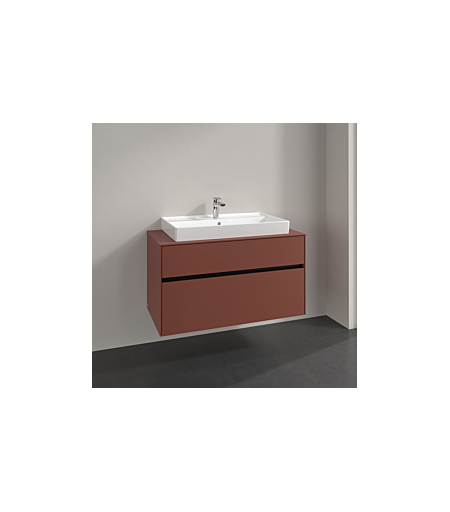 Villeroy und Boch Collaro Waschtischunterschrank C020B0AH 100x54,8x50cm, Waschtisch mittig, LED-Beleuchtung 7,3 W, wine red