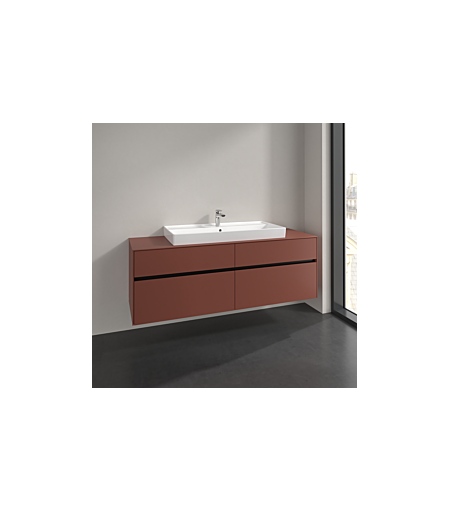 Villeroy und Boch Collaro Waschtischunterschrank C031B0AH 160x54,8x50cm, Waschtisch mittig, LED-Beleuchtung 12W, wine red