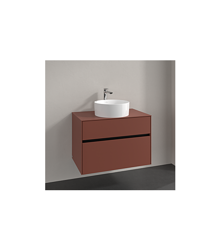 Villeroy und Boch Collaro Waschtischunterschrank C037B0AH 80x54,8x50cm, Waschtisch mittig, LED-Beleuchtung 5,7 W, wine red