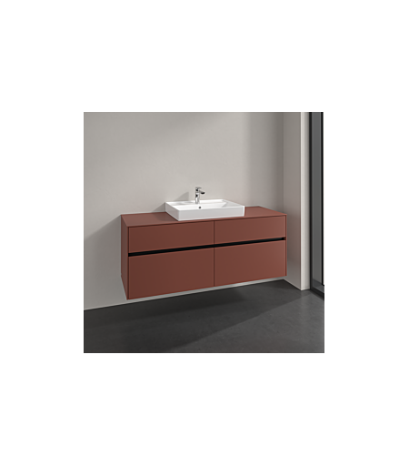 Villeroy und Boch Collaro Waschtischunterschrank C087B0AH 120x54,8x50cm, Waschtisch mittig, LED-Beleuchtung 8,8 W, wine red
