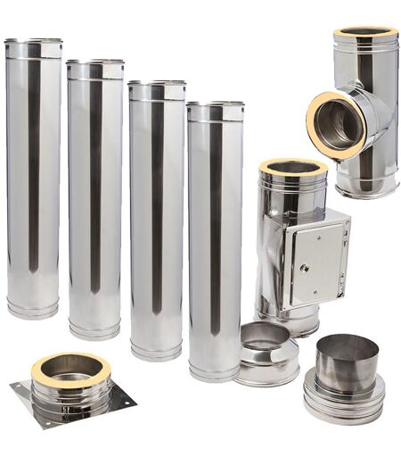 KaminStore24 Schornstein-Set Edelstahl DN 130mm doppelwandig Länge ca. 4,8m Wandmontage ohne Montage Material DW